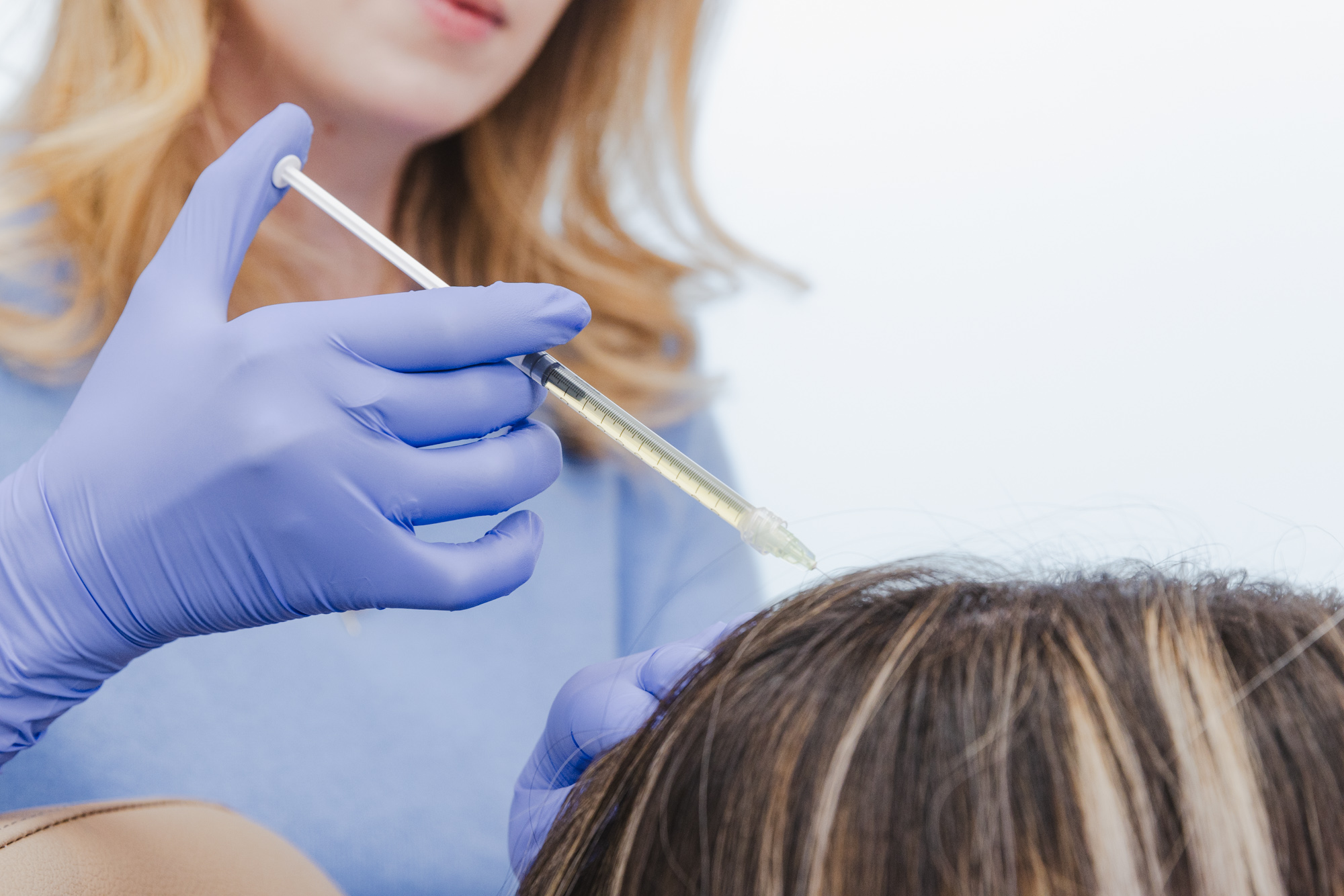 Both of our treatments – PDGF and PRP hair restoration – involve targeted injections into the scalp to nourish the hair follicles, support regrowth, and improve overall scalp health. Your provider will guide you through each option and recommend the best treatment based on your hair goals, lifestyle, and overall health.